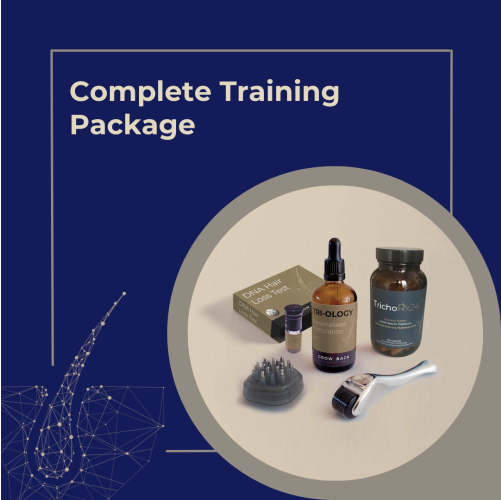 Includes all three training sessions (Supplement/Advanced/Mesotherapy) ** Certification: CPD certified ** Combined Price: £950 + VAT ** FOC Stock: 6 x TrichoRx24 Science Based Hair Health Supplement